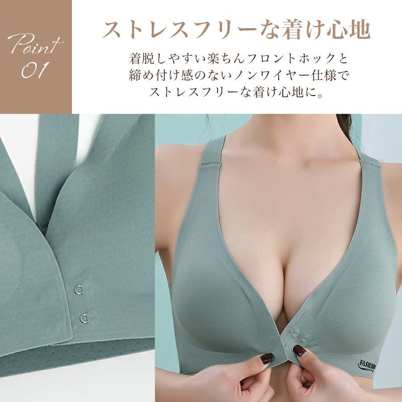ノンワイヤー ブラ フロントホック レディース インナー 下着 薄手 吸汗 速乾 通気性 夏 快適 涼しい 響かない 蒸れない スポーツブラ ブラジャー ブラトップ シームレス 大きいサイズ 送料無料