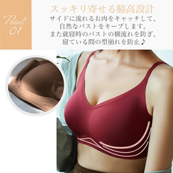 ナイトブラ 育乳ブラ ノンワイヤー シームレス ブラ 補正 快適 育乳 脇肉 ワイヤレスブラ ブラジャー 補正下着 ノンワイヤーブラ 脇高ブラ ブラトップ カップ付 小胸 送料無料