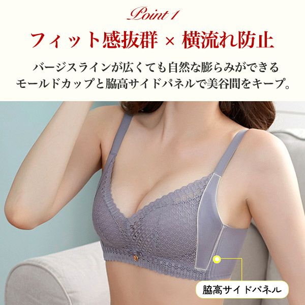【スプリングキャンペーン!クーポン利用で半額1,640円】ブラ レディース インナー 樹脂ワイヤー 下着 脇高 補正 ランジェリー モールドカップ 小胸 谷間 脇肉 快適 柔らか 痛くない 苦しくない フィット ブラジャー レース 20代 30代 40代