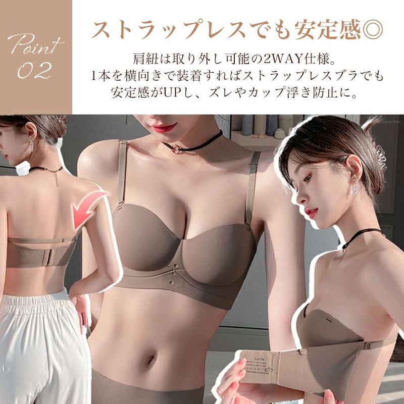 ノンワイヤーブラ ストラップレス 脇高 盛れる インナー