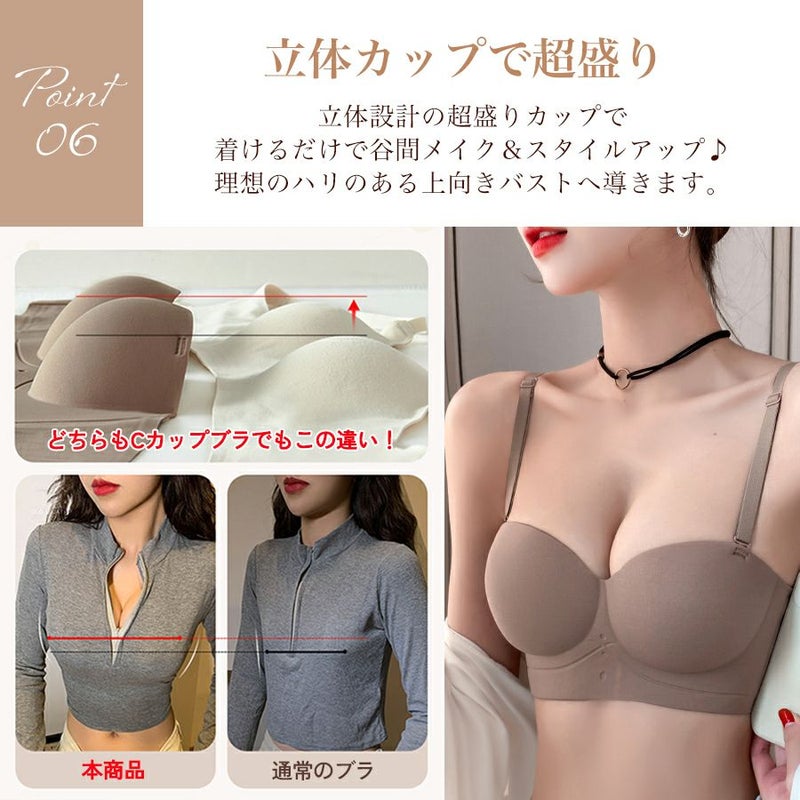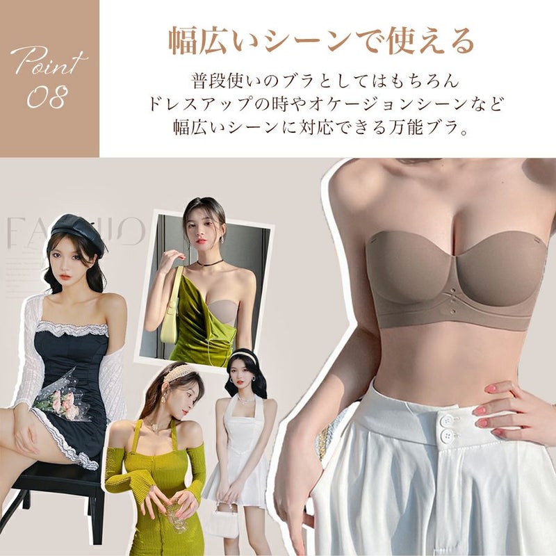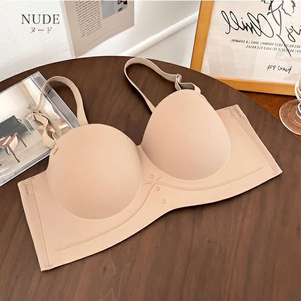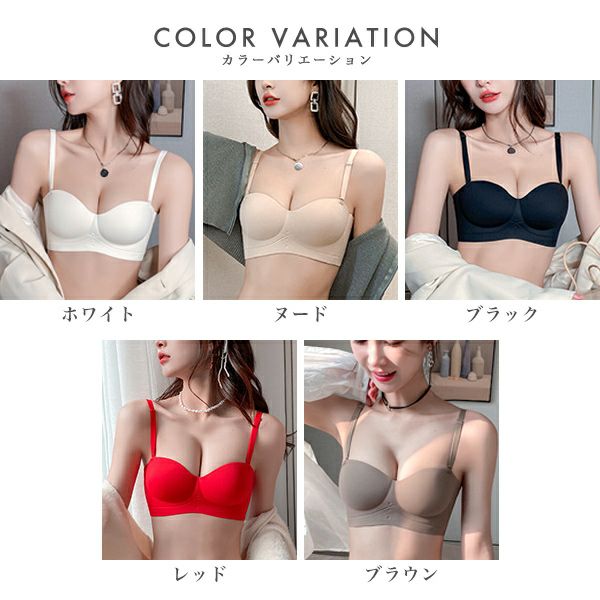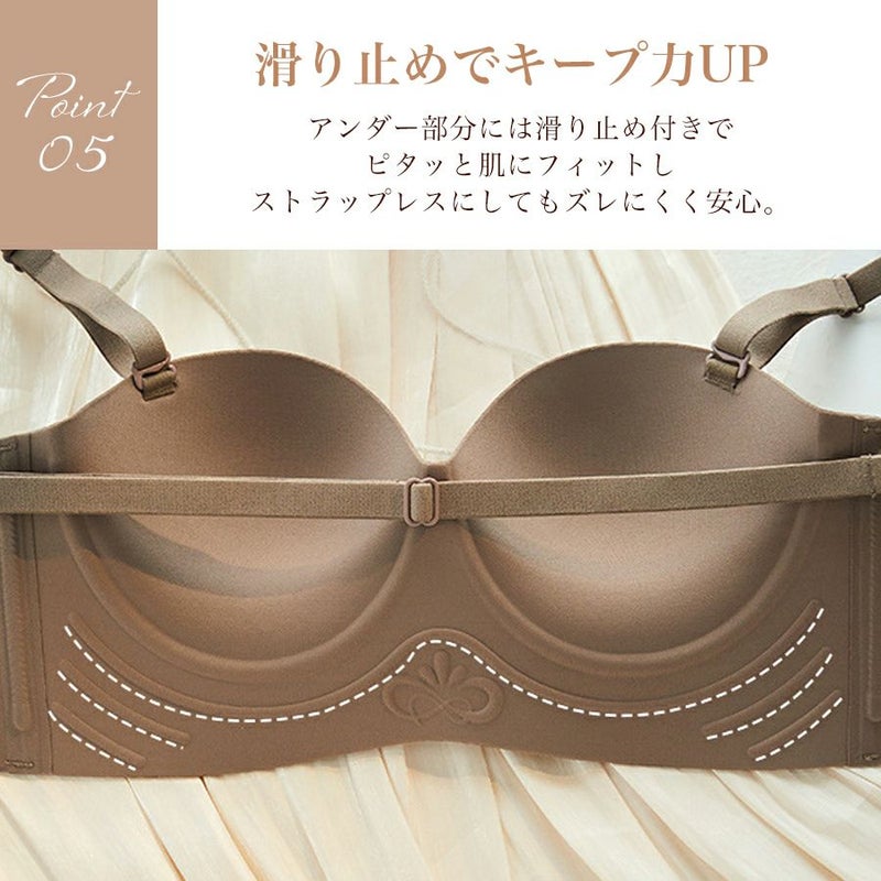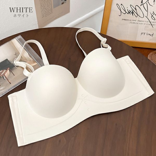 ブラ ノンワイヤー ストラップレス レディース インナー 下着 ブラジャー 脇高 盛れる 谷間 盛りブラ 紐無し シームレス 無地 シンプル 結婚式 ドレス オフショル チューブトップ ずれない 落ちない 大きいサイズ 【予約】5月上旬頃入荷予定
