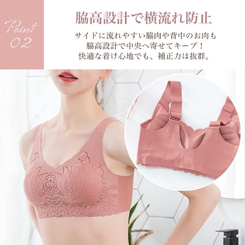 ノンワイヤー ブラ 脇高 補正 レディース ナイトブラ インナー 育乳 下着 ブラジャー 快適 ずれない 大きいサイズ 締め付けない バストケア 昼夜兼用 夜用 垂れ防止 レース 送料無料 【予約】5月上旬頃入荷予定