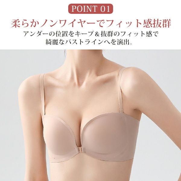 ノンワイヤー ブラ フロントホック ストラップレス 快適