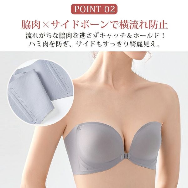 ノンワイヤー フロントホック ブラ ブラトップ ナイトブラ ストラップレス 肩紐なし 2WAY ブラジャー インナー 落ちない オフショルダー チューブトップ ベアトップ レディース 無地 シンプル ドレス 送料無料 【予約】5月上旬頃入荷予定