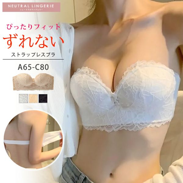 ストラップレスブラ 落ちない ずれない 紐なしブラ ノンワイヤーブラ 夏 盛れる 谷間 肩紐なし チューブトップ ベアトップ 脇高 小胸 インナー 下着 送料無料【予約】5月上旬頃入荷予定