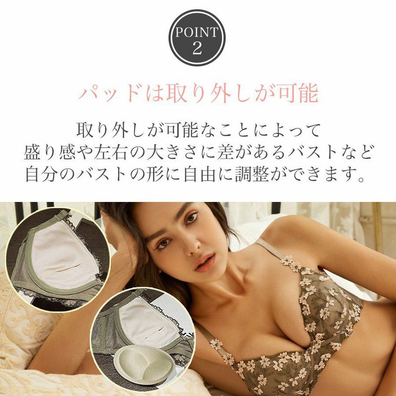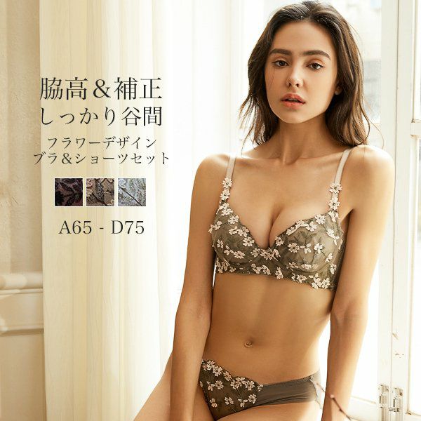 上下セット 脇高ブラ 下着セット ブラジャー ショーツ 楽ちんブラ/ブラジャー セット 花柄 レディース 脇高 下着 インナー 上下 脇肉 スッキリ 楽ちん セクシー 谷間 盛れる