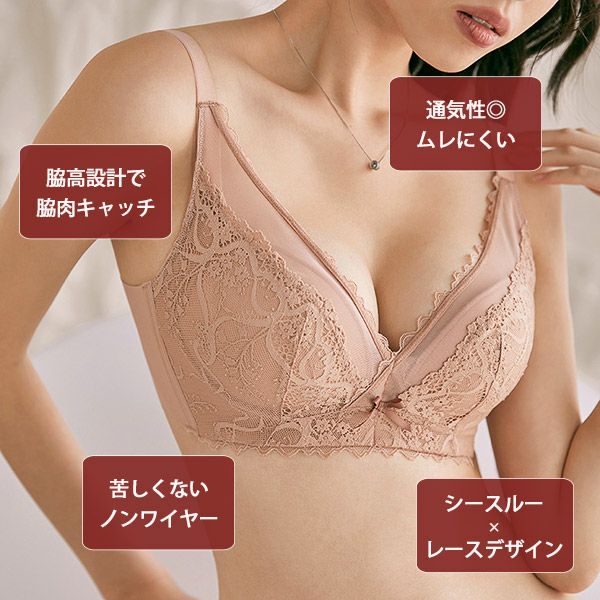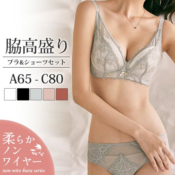 ノンワイヤーブラ ブラジャー ショーツ セット 小胸 レディース インナー 下着 上下セット ノンワイヤー 苦しくない 楽ちん 快適 脇高 レース シースルー 通気性 脇肉 盛れる 可愛い くすみカラー ニュアンスカラー 送料無料 【予約】5月上旬頃入荷予定