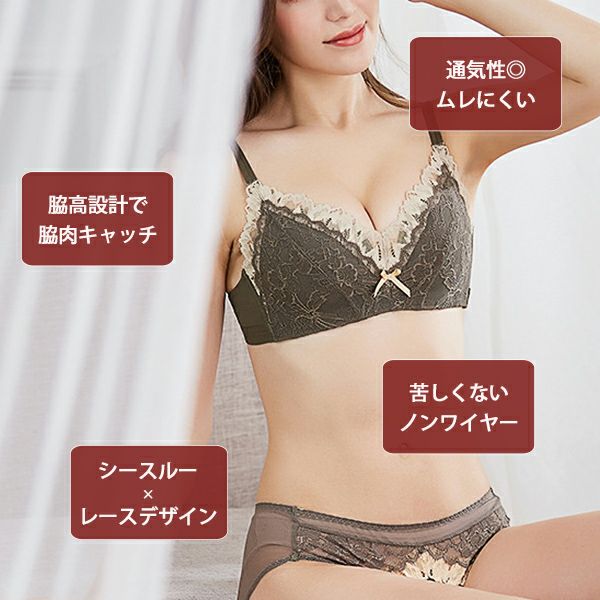 ノンワイヤーブラ ブラジャー ショーツ セット レディース インナー 下着 上下セット ノンワイヤー 苦しくない 楽ちん 快適 脇高 レース シースルー 通気性 脇肉 盛れる 可愛い くすみカラー ニュアンスカラー 送料無料