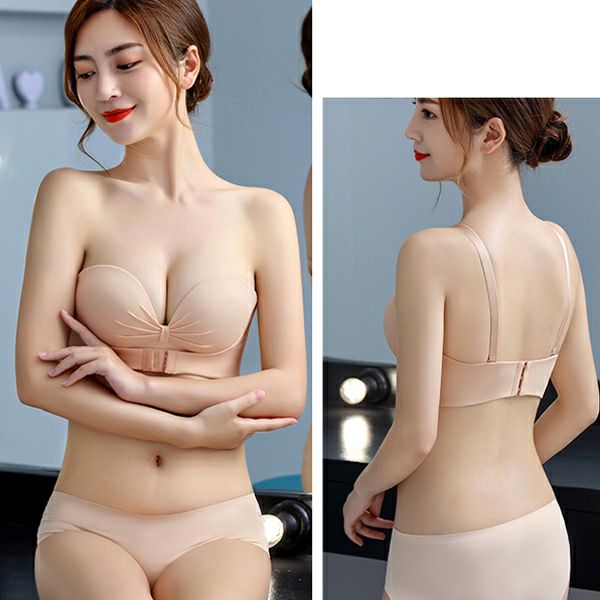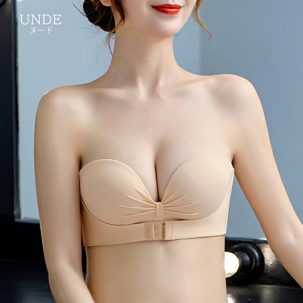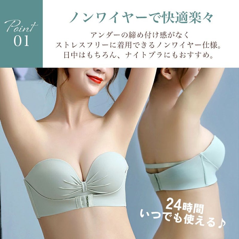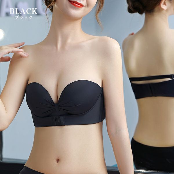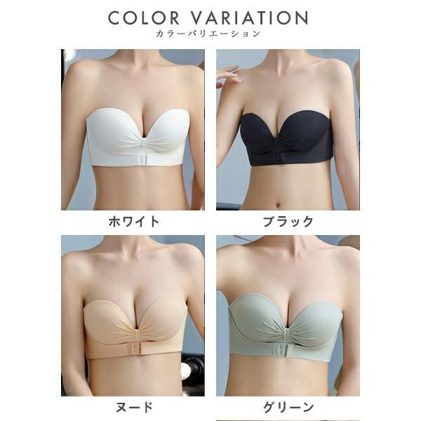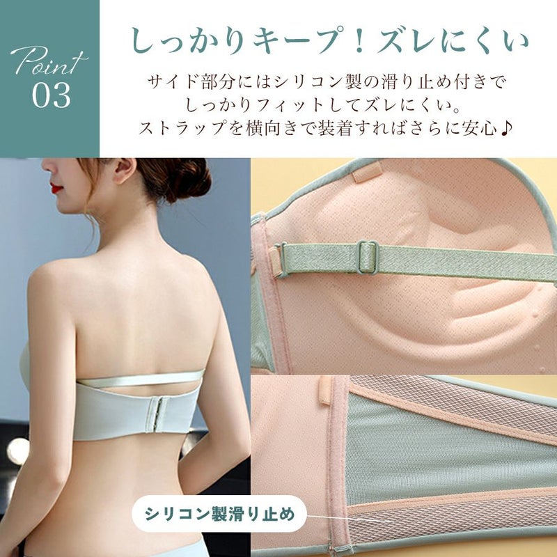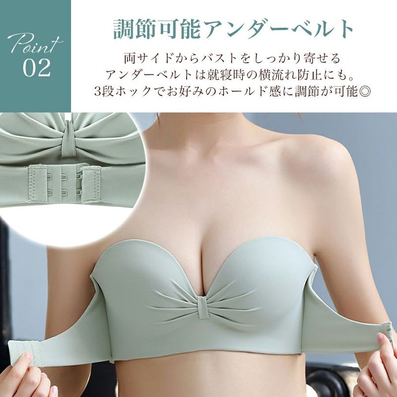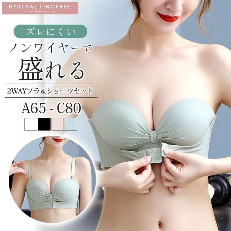 ノンワイヤー ブラ ショーツ セット ストラップレス 2WAY レディース ナイトブラ インナー 下着 ブラジャー ずれない 落ちない 滑り止め 盛れる 紐無し ドレス 結婚式 オケージョン オフショル 送料無料 【予約】5月上旬頃入荷予定