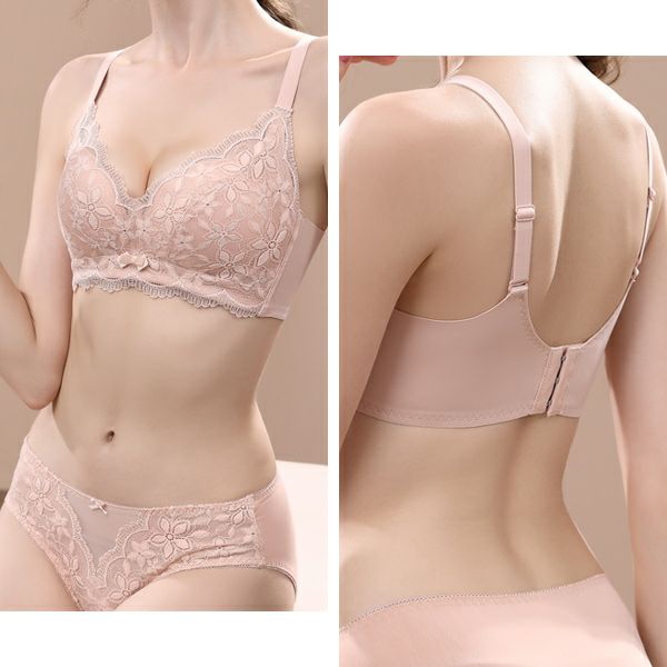 ブラジャー ショーツ セット ノンワイヤー ブラ&ショーツセット レディース インナー ブラ 小胸 谷間 補正 脇高ブラ 盛れる ノンワイヤーブラ 痛くない ナイトブラ 脇肉 補正下着 レース 可愛い お洒落 送料無料 【予約】5月上旬頃入荷予定