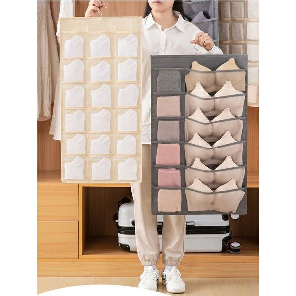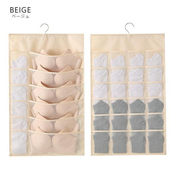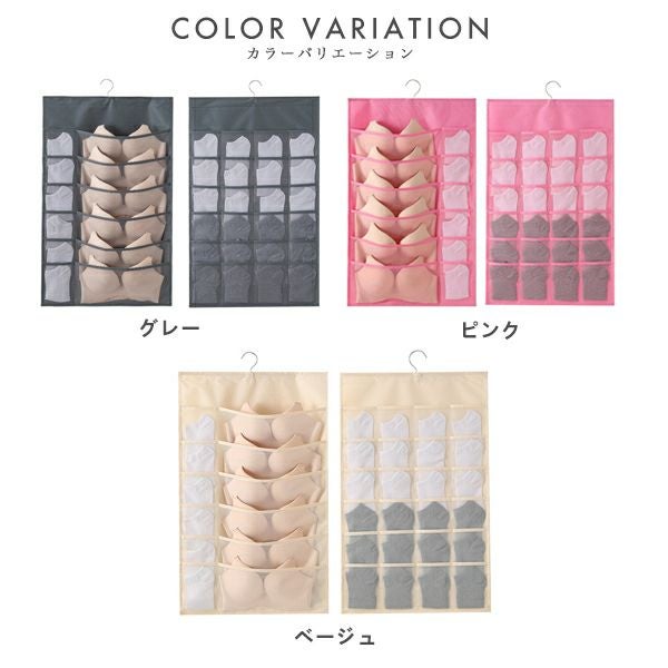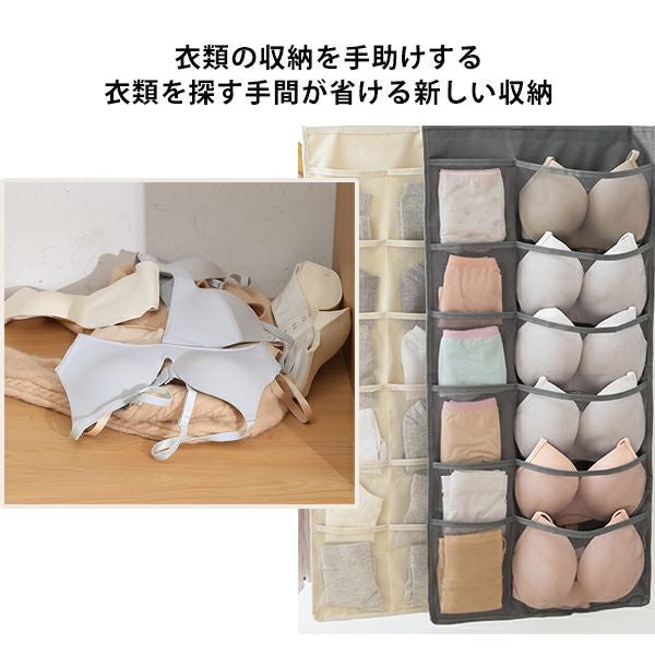 下着 収納 壁掛け ウォールポケット 収納ポケット スリム 両面 メッシュ 仕切り 吊り下げ クローゼット ブラ収納 型崩れ防止 衣類 ブラジャー 12ポケット 24ポケット 送料無料 【予約】5月上旬頃入荷予定