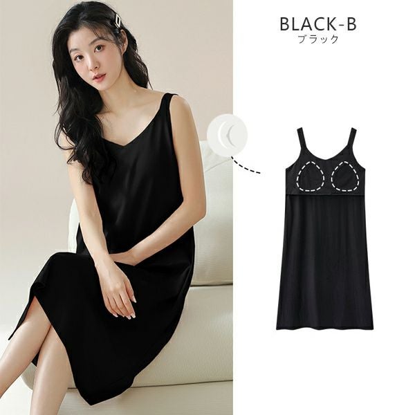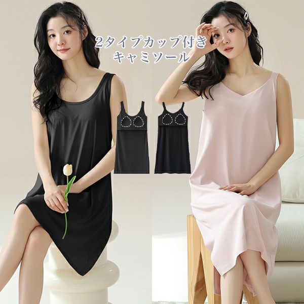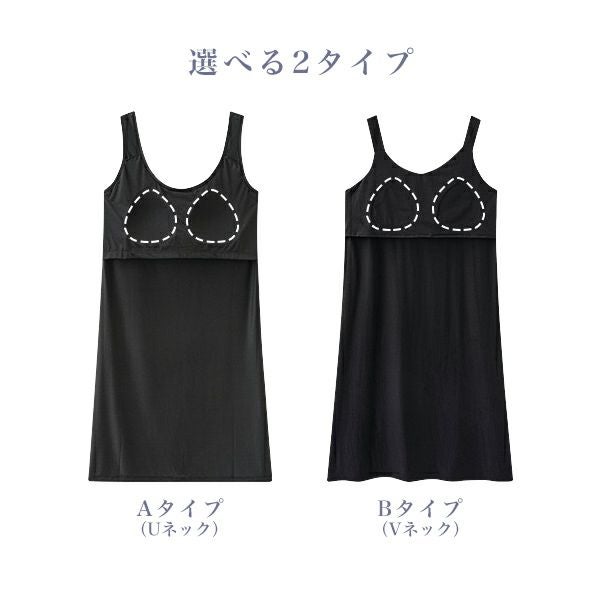キャミソール カップ付き キャミワンピ インナー キャミソールワンピース ブラキャミソール ロング ノンワイヤー Uネック Vネック 下着 キャミワンピース ペチコート かわいい ポイント消化 送料無料 【予約】5月上旬頃入荷予定