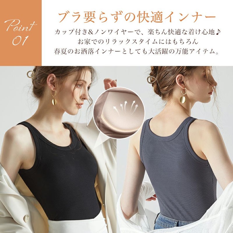 【公式サイト限定50%OFF1,490円】タンクトップ カップ付き ノンワイヤー キャミソール レディース インナー 下着 リブ ブラジャー ブラトップ カップ付きインナー 盛り 快適 伸縮性 夏 部屋着 ルームウェア パジャマ お洒落 【予約】5月上旬頃入荷予定