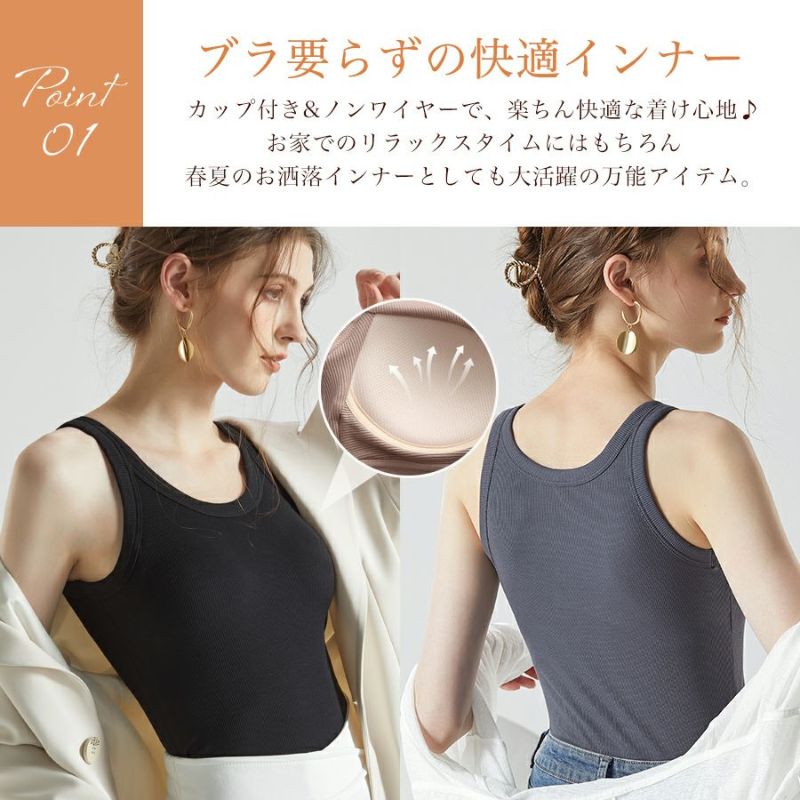 タンクトップ カップ付き ノンワイヤー インナー ブラ 夏 【公式サイト限定50%OFF1,490円】タンクトップ カップ付き ノンワイヤー キャミソール レディース インナー 下着 リブ ブラジャー ブラトップ カップ付きインナー 盛り 快適 伸縮性 夏 部屋着 ルームウェア パジャマ お洒落 【予約】1月下旬頃入荷予定