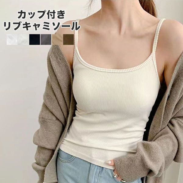 カップ付きキャミソール ブラトップ カップ付きインナー パッド付き ブラトップ ブラキャミソール ブラキャミ リブ タンクトップ インナー ノンワイヤー おうち ルームウェア 夏 昼 夜 送料無料 【予約】5月上旬頃入荷予定
