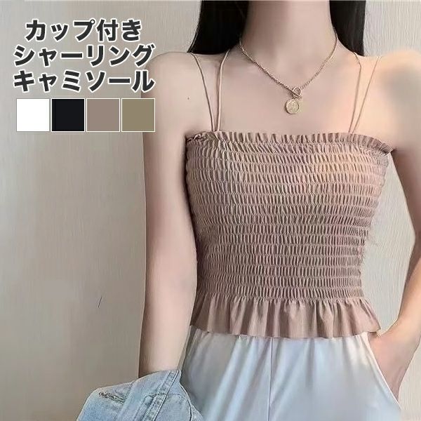 カップ付きキャミソール ブラトップ カップ付きインナー ブラトップ ブラキャミソール ブラキャミ タンクトップ シャーリング インナー ノンワイヤー おうち ルームウェア 夏 昼 夜 送料無料 【予約】5月上旬頃入荷予定