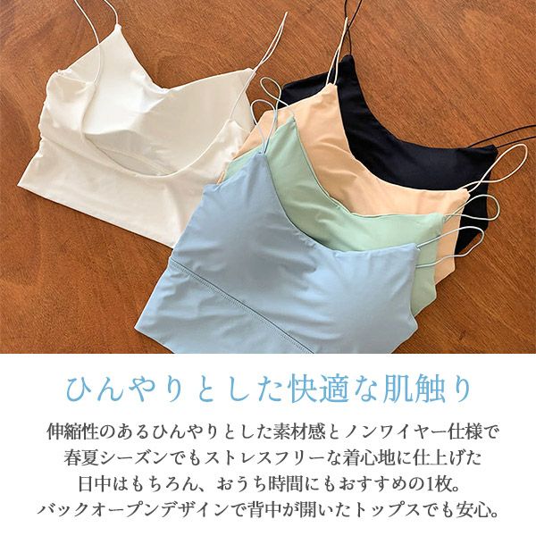 他の画像を見る お気に入りに登録する ブラトップ キャミソール ノンワイヤー バックオープン 春夏 【公式サイト限定50%OFF1,490円】ブラトップ キャミソール ノンワイヤー レディース インナー バックオープン カップ付き 背中開き 冷感 接触冷感 ひんやり 春 夏 快適 伸縮性 黒 白 ベージュ ブルー グリーン おうち時間 リラックス 【予約】5月上旬頃入荷予定 定価 ¥ 2,980 のところ 当店特別価格 ¥ 1,490 税込