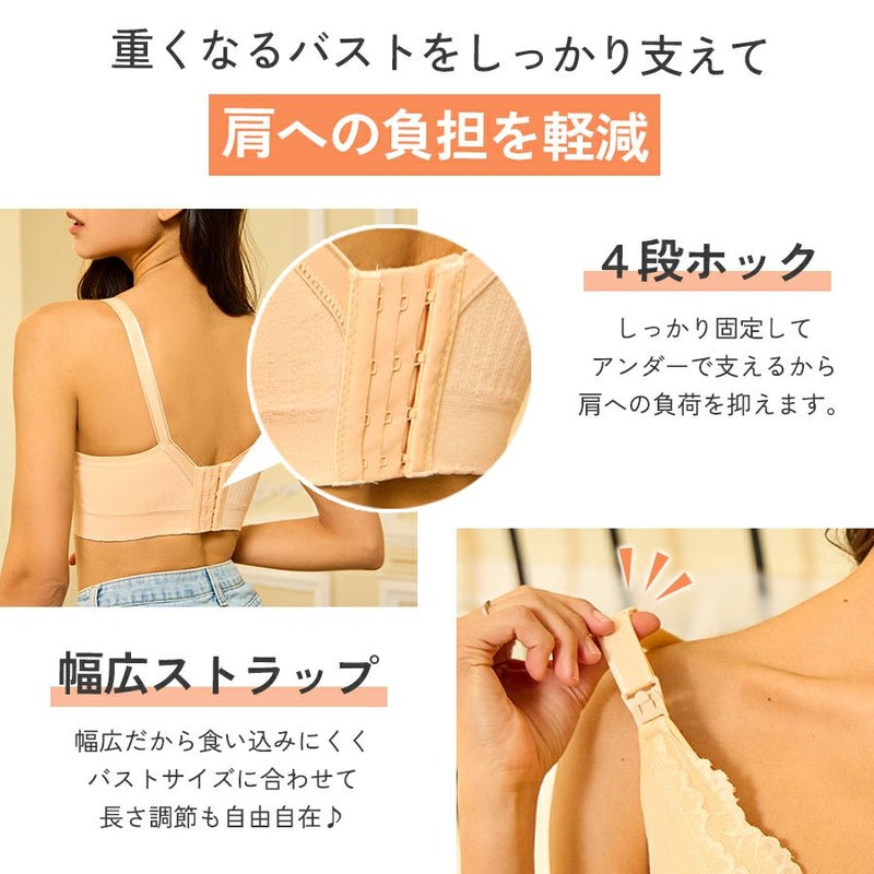 【公式サイト限定55%OFF1,780円】授乳ブラ ノンワイヤー ブラ フロントオープン 前開き レディース インナー 延長ホック付 マタニティブラ ブラジャー 下着 産前 産後 出産準備 大きいサイズ 下垂防止 脇高 苦しくない 快適 通気性 伸縮性 ナイトブラ 【予約】5月上旬頃入荷予定