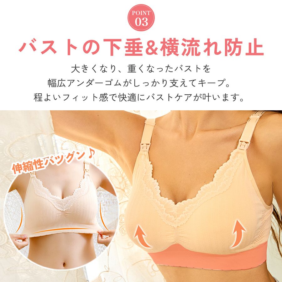 授乳ブラ ノンワイヤー ブラジャー フロントオープン スナップ 前開き 延長ホック付 レディース インナー 大きいサイズ マタニティ 産前 産後 快適 ナイトブラ